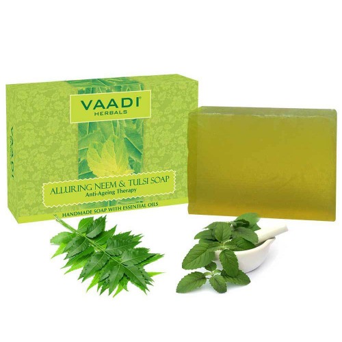 Jabón Neem Tulsi (Alluring Neem Tulsi Soap +Vitamin E, Tea Tree Oil | Vaadi) 75g