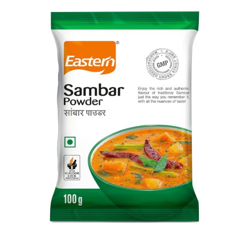 Descubra el compañero ideal para su sambar con el Masala de Sambar de Eastern. Esta mezcla cuidadosamente elaborada de 10 ingredientes aromáticos realza el sabor de sus platos, asegurando una explosión de sabor en cada bocado. Molido meticulosamente a la perfección, este polvo de masala no contiene colorantes ni conservantes añadidos, permitiéndole disfrutar de sus comidas con tranquilidad. El Masala de Sambar de Eastern es parte de una diversa gama de masalas sabrosas, incluyendo el Masala en Polvo Bisibelebath de Eastern y el Masala en Polvo Vangibath de Eastern, atendiendo todas sus necesidades culinarias. Disponible en un conveniente paquete de 100g, es perfecto tanto para cocineros caseros como para chefs profesionales. Eleve su cocina sin esfuerzo añadiendo un toque de Masala de Sambar de Eastern a sus recetas.