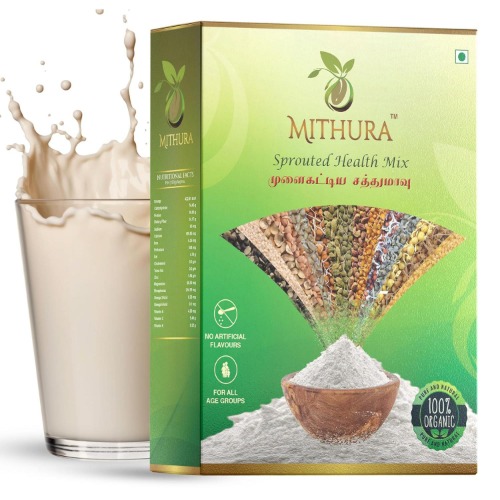 Mithura Mezcla Saludable Germinada es una bebida nutritiva elaborada con 26 ingredientes naturales, incluyendo cereales, legumbres y frutos secos. Este producto contiene un 75% de mijo, granos y legumbres germinados, siendo adecuado para todas las edades. Cada porción de 100 g aporta 16.7 g de proteína y 14.17 g de fibra, apoyando una dieta equilibrada. Nuestra mezcla no contiene conservantes, azúcar ni leche en polvo, garantizando un producto puro y saludable. ¿Por qué elegir Mithura Mezcla Saludable Germinada? ◦ Elaborada con ingredientes de primera calidad ◦ Los ingredientes son prelavados, germinados y tostados para garantizar la mejor calidad y sabor ◦ Tamizada a mano antes del empaque ◦ Excelente relación calidad-precio