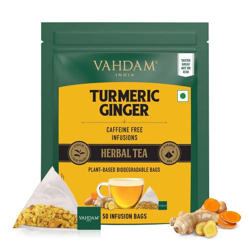 Té de Hierbas de Cúrcuma y Jengibre [Descafeinado] (Turmeric Ginger Herbal Tea | Vahdam) 50teabags